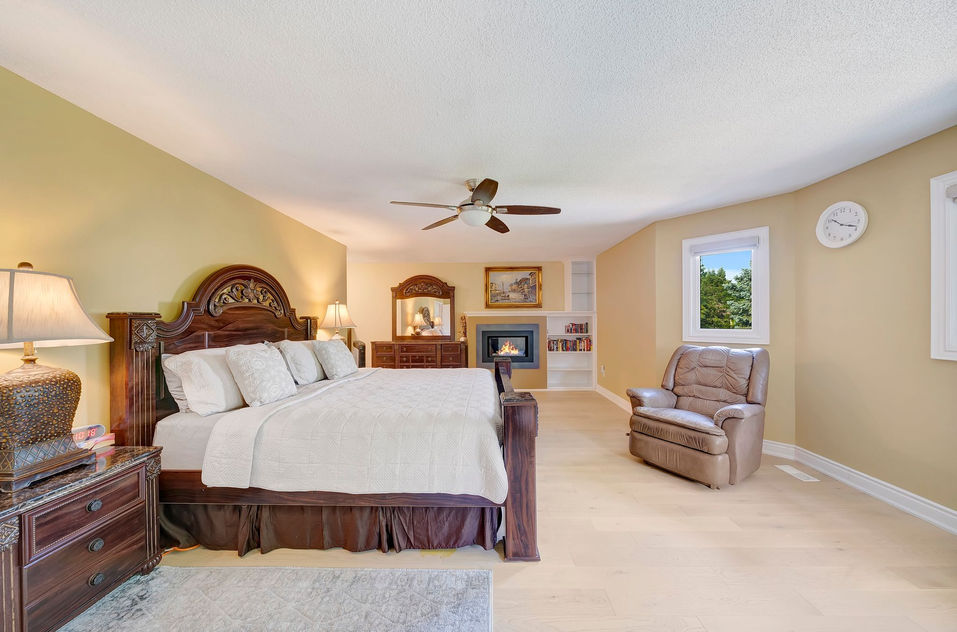 Upstairs, you’ll find 4 generously sized bedrooms, including a primary retreat with a sitting area, fireplace, custom built-ins, and a luxurious 5-piece ensuite. The finished basement includes a 5th bedroom, 3-piece bath, large and open concept rec room, additional family room, and utility room for storage.